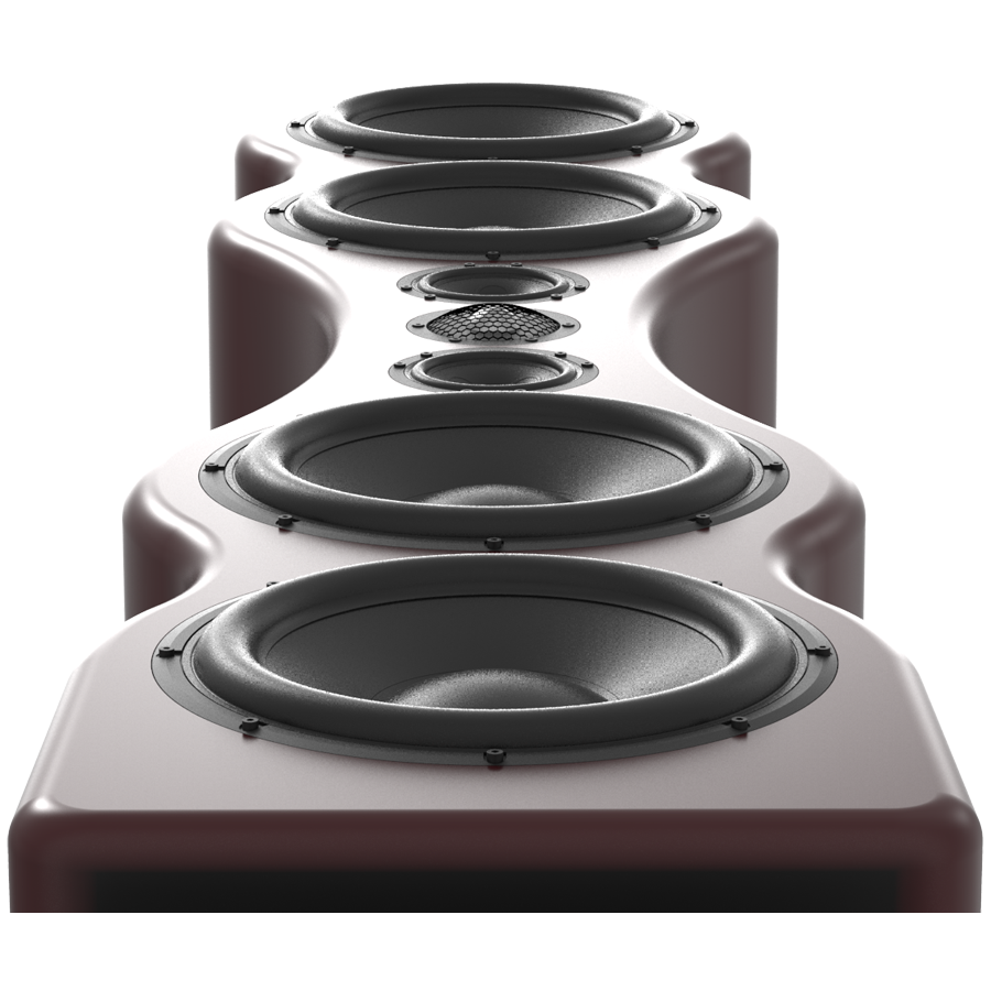 主动式3路分频设计,5个独立腔室,落地式音箱,采用多层MDF复合板材专利空间结构。