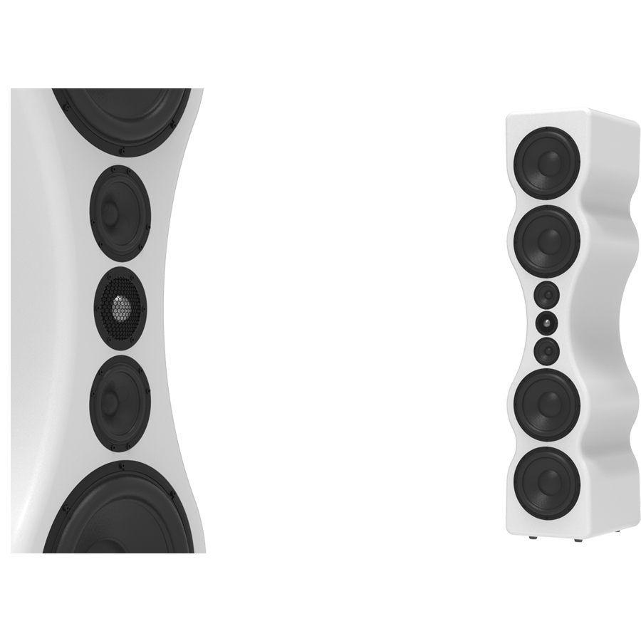 主动式3路分频设计,5个独立腔室,落地式音箱,采用多层MDF复合板材专利空间结构。